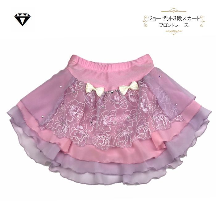 ジョーゼット3段スカート フロントレース(ベビーピンク×ラベンダー) [FS0004]