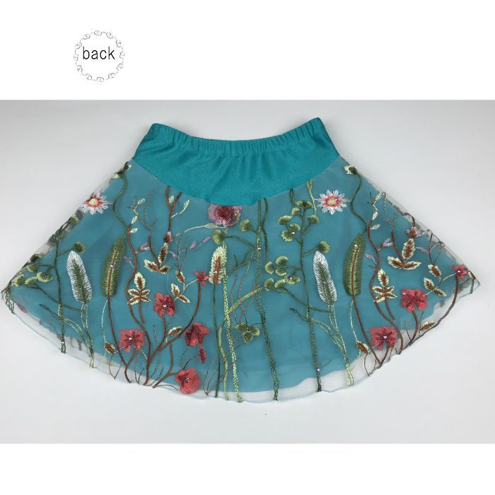 刺繍レースとジョーゼット2段スカート (ジェイド) [FS0020]