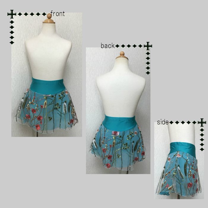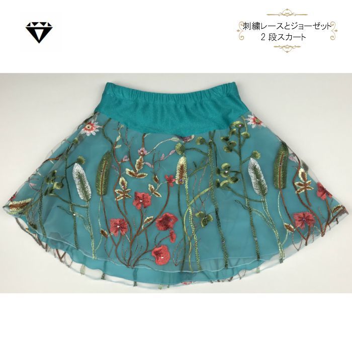 刺繍レースとジョーゼット2段スカート (ジェイド)
