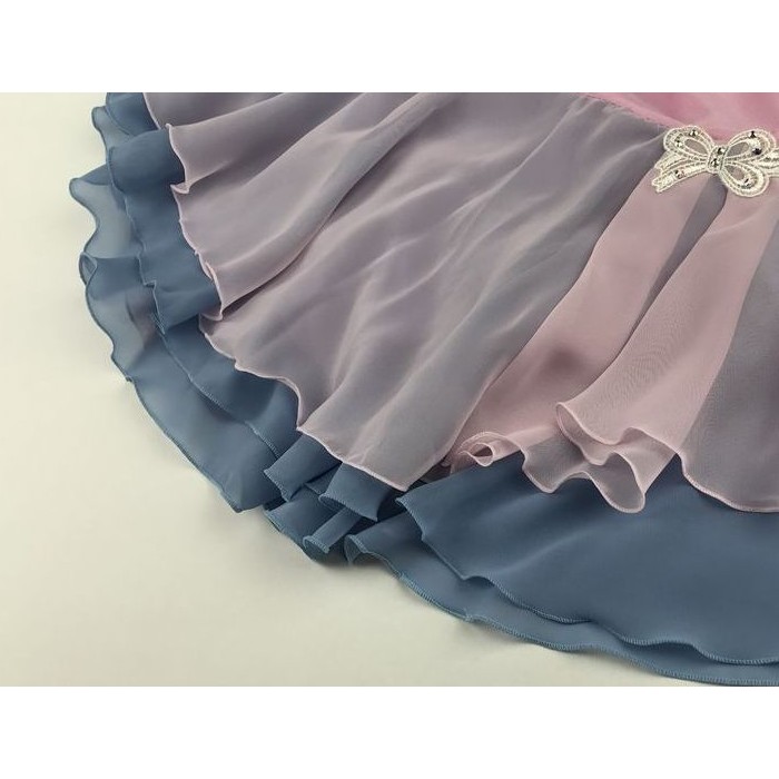 ジョーゼット2段スカート サイドドレープ(ピンク×ブルーグレー) [FS0035]
